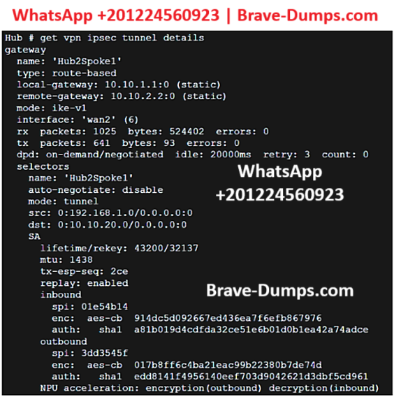 This value indicates that both inbound and outbound IPsec Security Associations (SAs) are offloaded to the Network Processing Unit (NPU). This is confirmed by the tunnel output line: