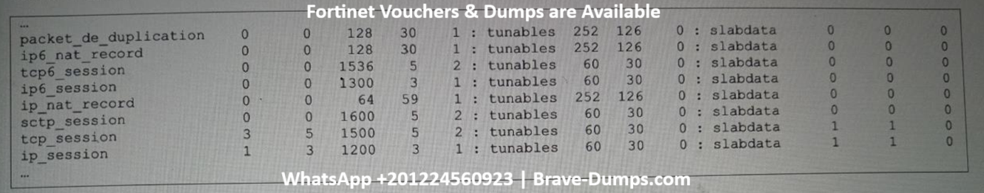 Refer to the exhibit, which shows the partial output of FortiOS kernel slabs. Which statement is true? (Choose one answer)