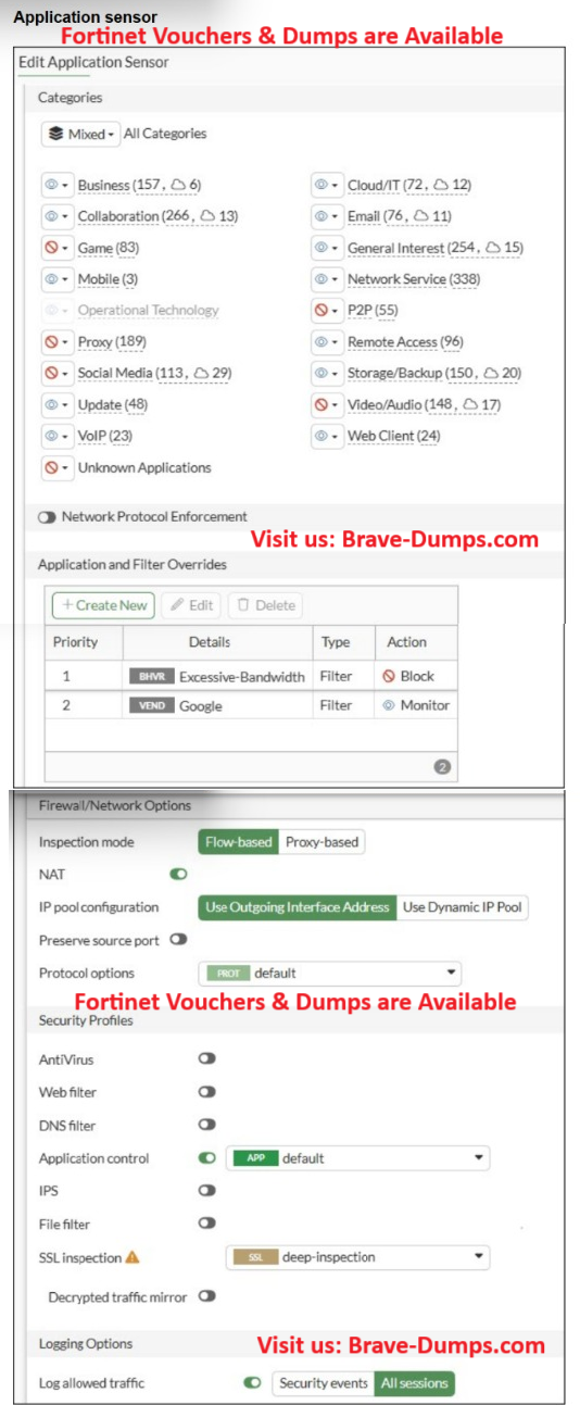 Refer to the exhibits. You have implemented the application sensor and the corresponding firewall policy as shown in the exhibits. Which two factors can you observe from these configurations? (Choose two answers)
