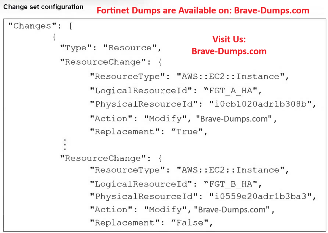 Refer to the exhibit. You are managing an active-passive FortiGate HA cluster in AWS that was deployed using CloudFormation. You have created a change set to examine the effects of some proposed changes to the current infrastructure. The exhibit shows some sections of the change set. What will happen if you apply these changes? (Choose one answer)