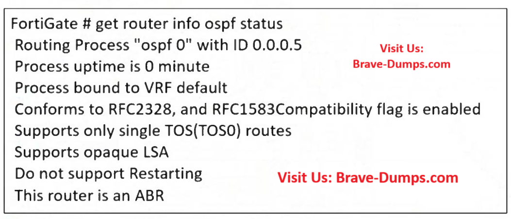Refer to the exhibit. The partial output of an OSPF command is shown. While checking the OSPF status of FortiGate, you receive the output shown in the exhibit. Based on the output, which two statements about FortiGate are correct? (Choose two answers)