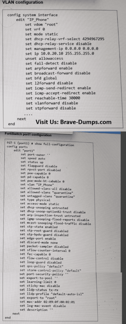 Refer to the exhibits. An IP phone is connected to port1 of FortiSwitch Access-1. The IP phone tags its traffic with VLAN ID 20. On FortiGate, VLAN IP_Phone (VLAN ID 20) has been configured, and port1 of Access-1 is set with VLAN 20 as the native VLAN. However, the IP phone cannot reach the network. The exhibit shows the partial VLAN configuration and the port1 configuration on Access-1. Which configuration change must you make on FortiSwitch to allow ingress and egress traffic for the IP phone? (Choose one answer)