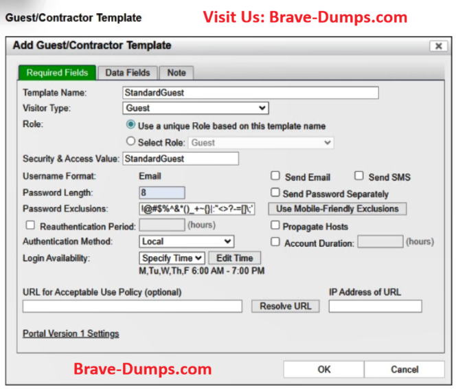 Refer to the exhibit. What will happen to the host of a guest user created from this template if the time of connection is 8:00 PM? (Choose one answer)