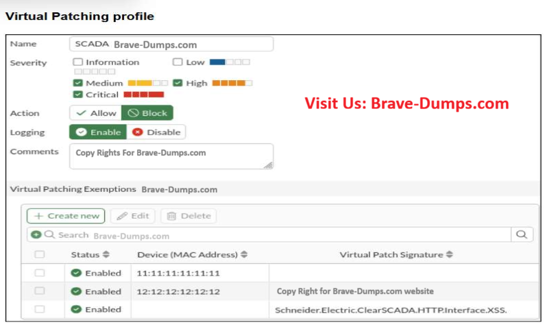 Refer to the exhibit. A Virtual Patching profile is shown. SCADA You have recently updated your SCADAsystem and would like to apply the SCADA virtual patching profile. Which two statements about this profile are correct? (Choose two answers)