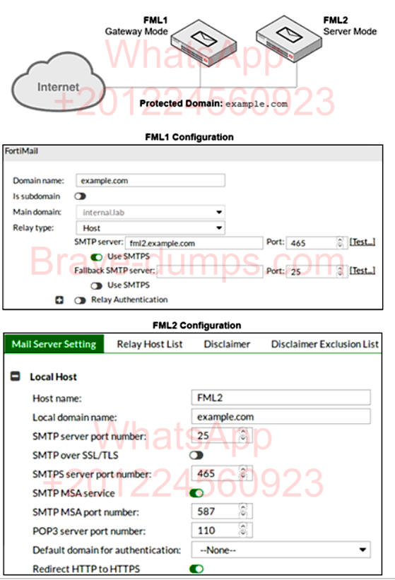 Refer to the exhibit. What is the expected outcome of SMTP sessions sourced from FML1 and destined for FML2? (Choose one answer)