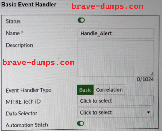 Refer to the exhibit. A basic event handler is shown. You have enabled Automation Stitch to automate the handling of an alert. Which two steps must you take to use this automation stitch? (Choose two answers)