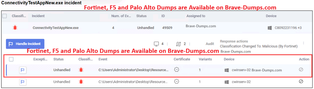 Refer to the exhibit. What observation can you make about the ConnectivityTestAppNew.exe incident? (Choose one answer)
