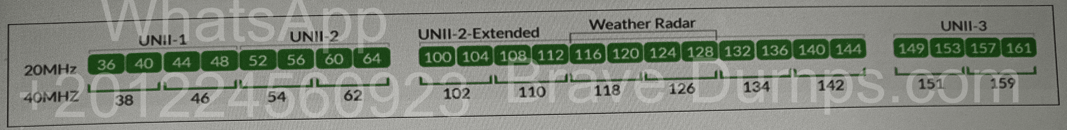 Refer to the exhibit. Which statement is correct about channels 52 through 144 in the 5 GHz band? (Choose one answer)