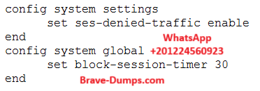 The set block-session-timer 30 command keeps blocked sessions active for 30 seconds (not minutes). If the question intended to refer to seconds rather than minutes, then B could be correct.