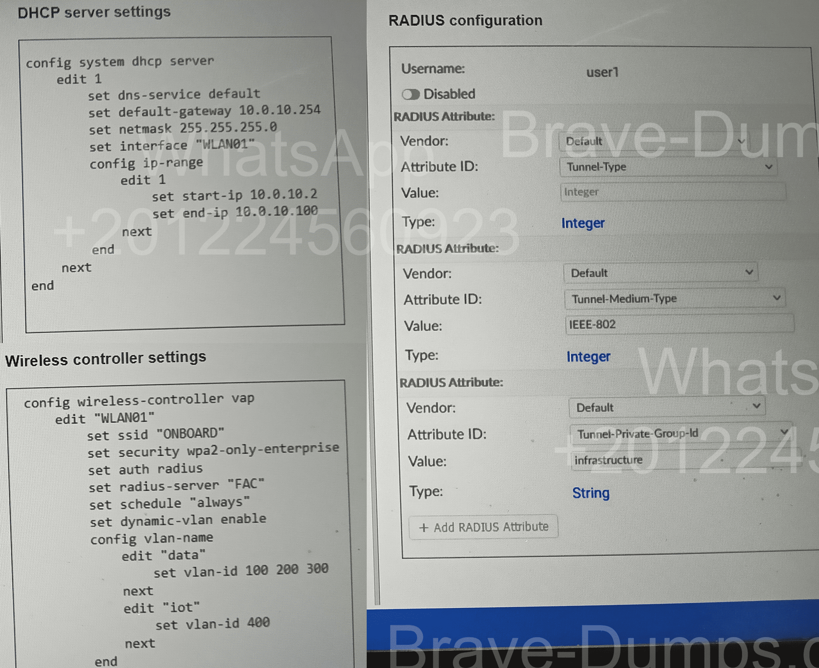 Refer to the exhibits. User1 is a member of the infrastructure department and connects to the ONBOARD Wi-Fi SSID using their user1 credentials. However, the dynamic VLAN assignment is not working. Which action will fix the issue? (Choose one answer)