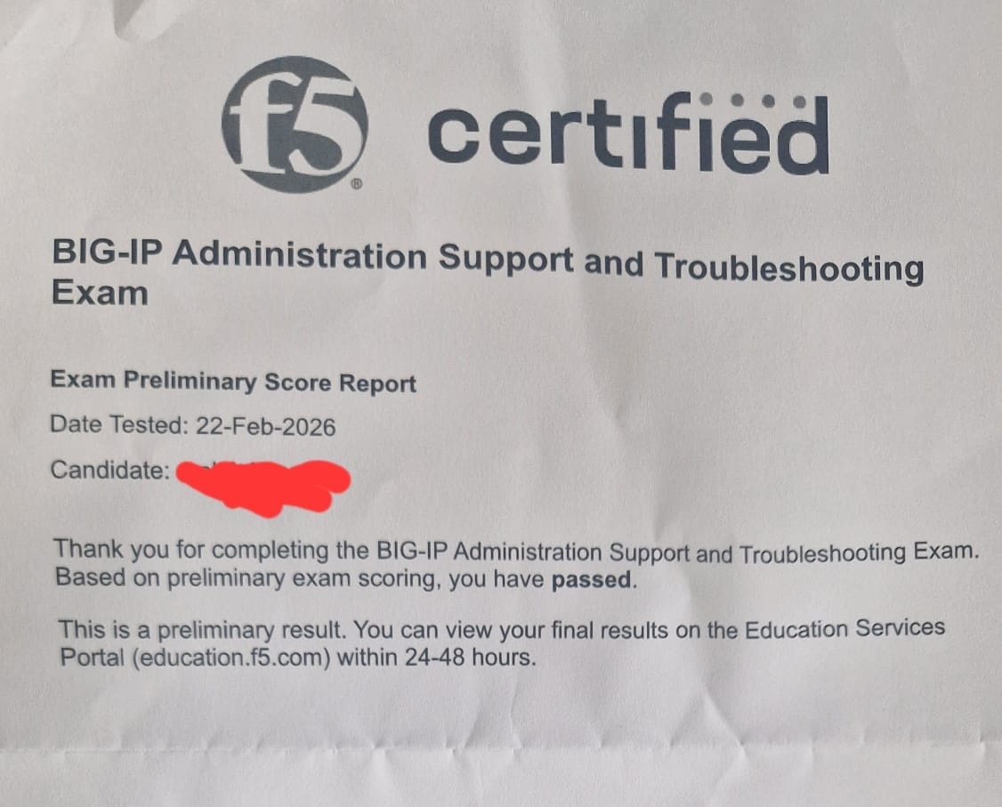 Hidden Name Product: ● BIG-IP Administration Support and Troubleshooting (F5CAB5)