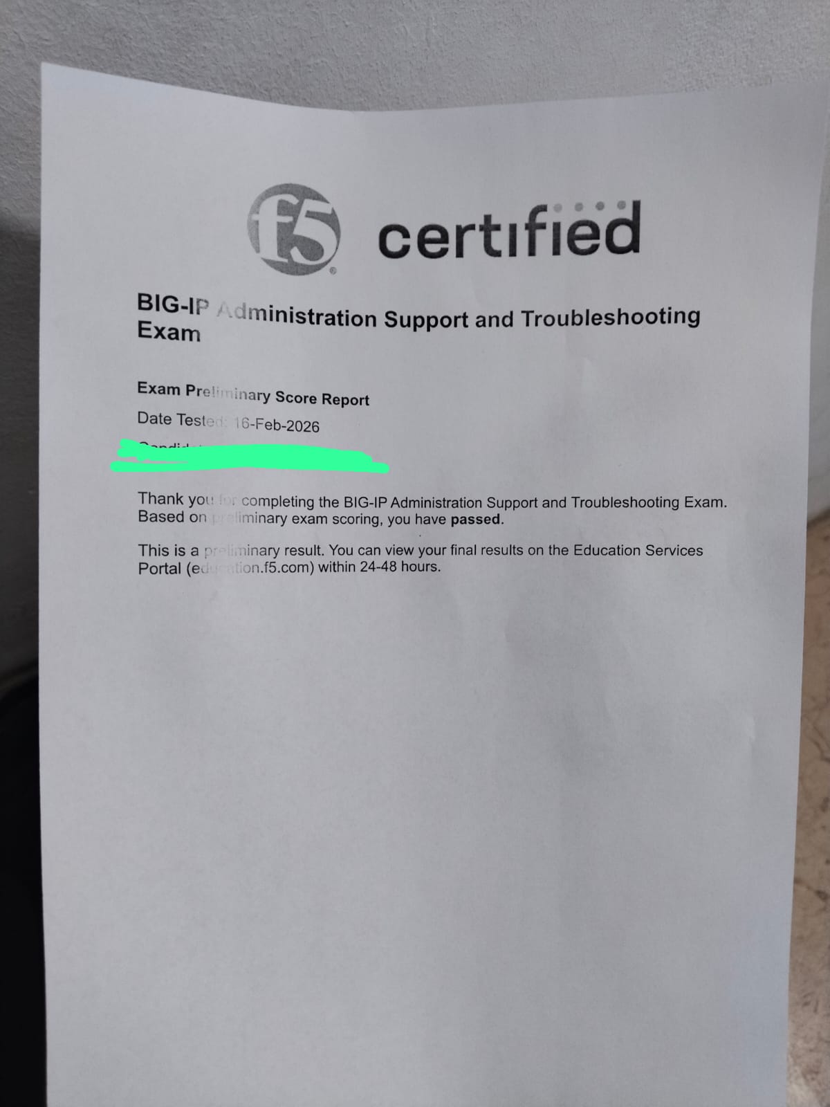 passed the fifth exam, BIG-IP Administration Support and Troubleshooting (F5CAB5)