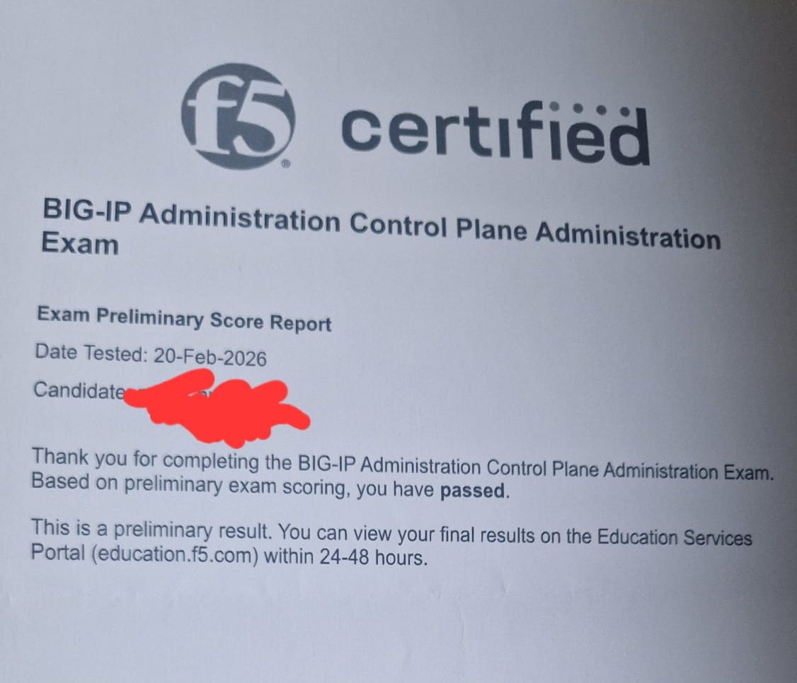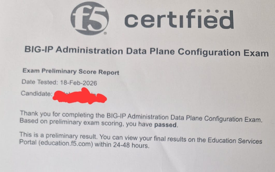passed the second exam, BIG-IP Administration Data Plane Concepts (F5CAB2)