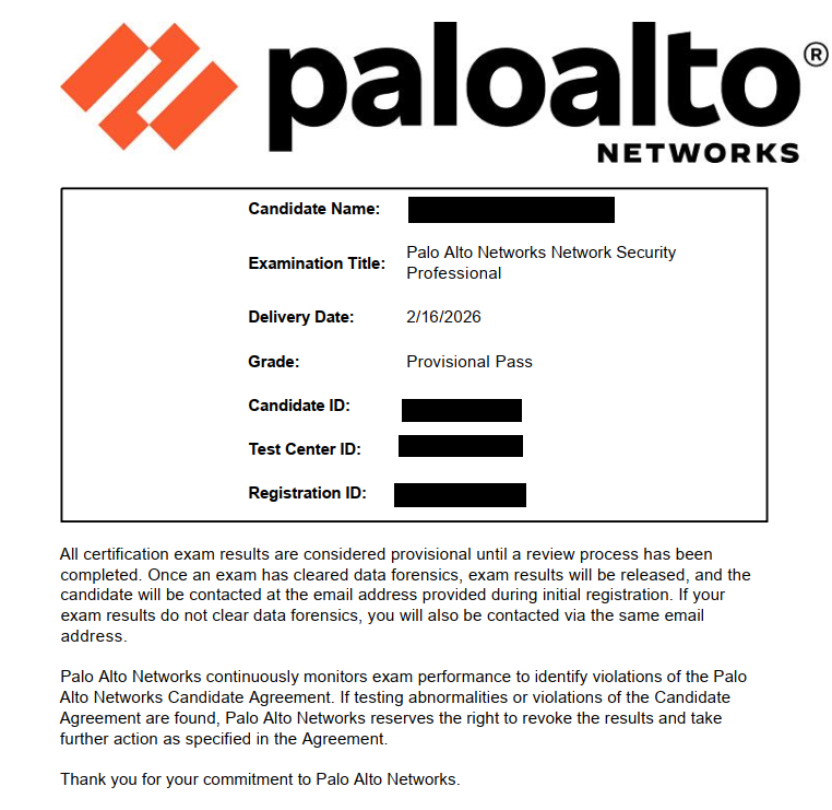 I passed palo alto network security professional exam, all questions from brave dumps, thank you.