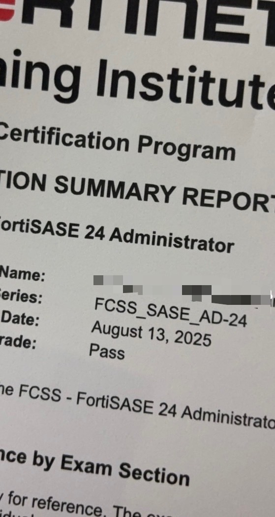 Hidden Name Product: ● FCSS - FortiSASE 24 Administrator Exam Voucher