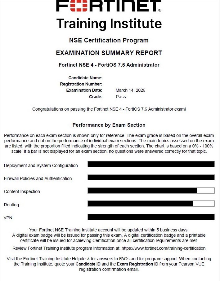 Hidden Name Product: ● NSE 4 - FortiOS 7.6 Administrator Exam Voucher