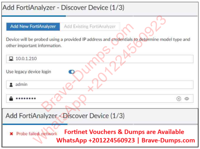 - A. The administrator must use the correct user name and password of the FortiAnalyzer device.