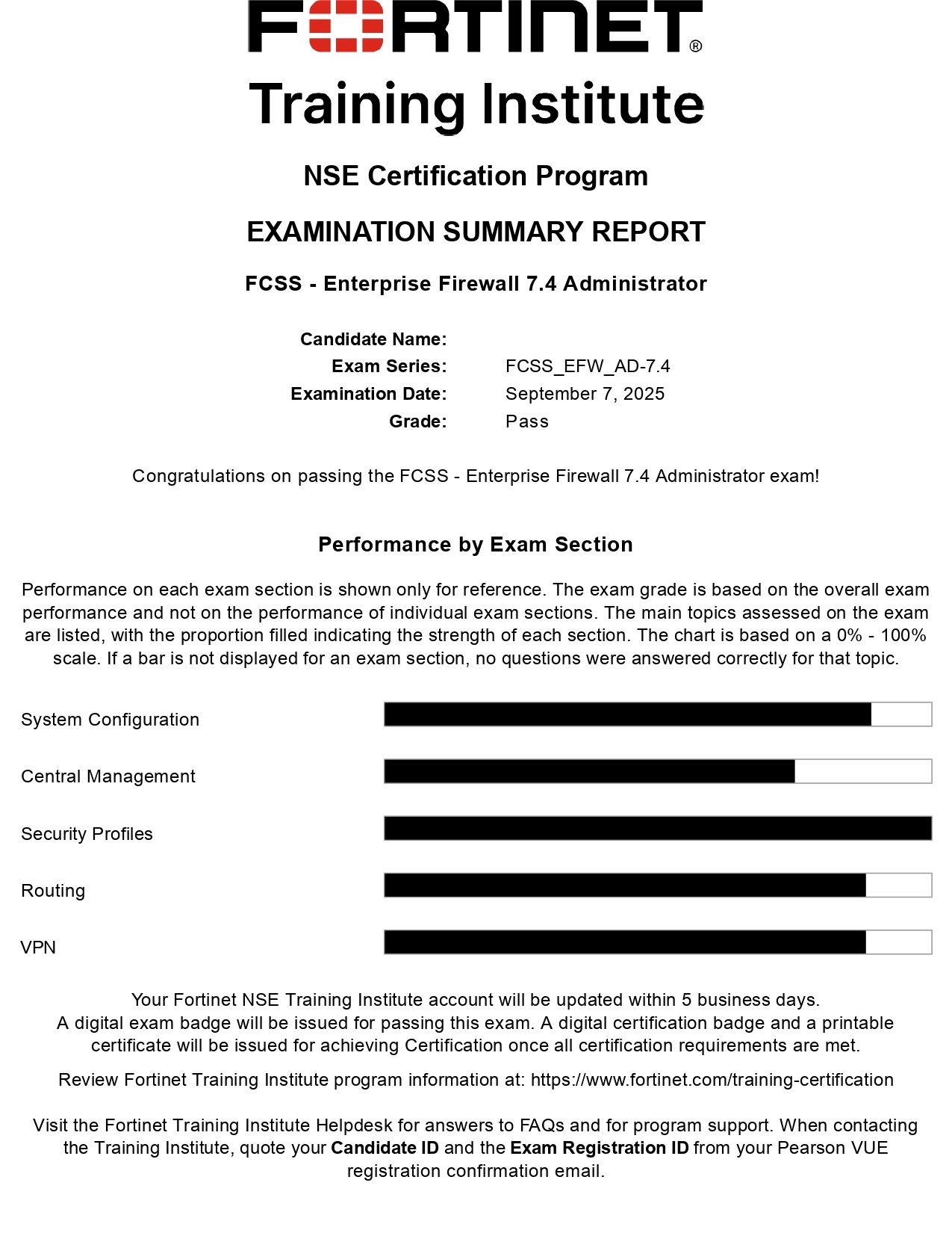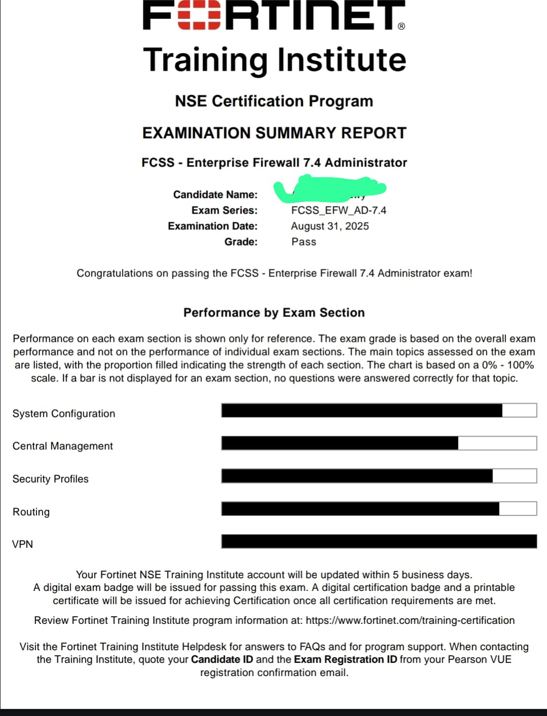 100% Score in the Real Enterprise Firewall 7.4 Exam (EFW_AD-7.4) at the Pearson VUE Testing Center