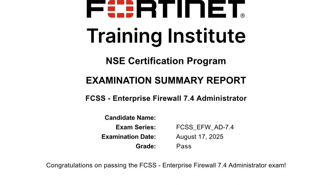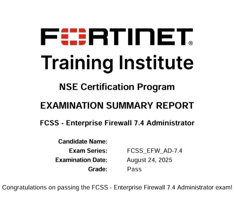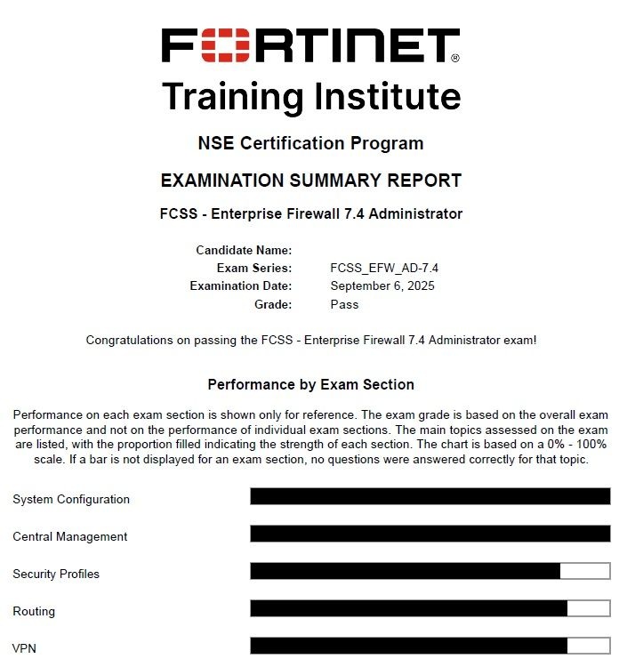 I've passed FCSS - Enterprise Firewall 7.4 Administrator exam, Thanks you for your valid dumps.