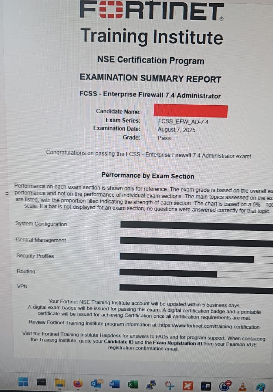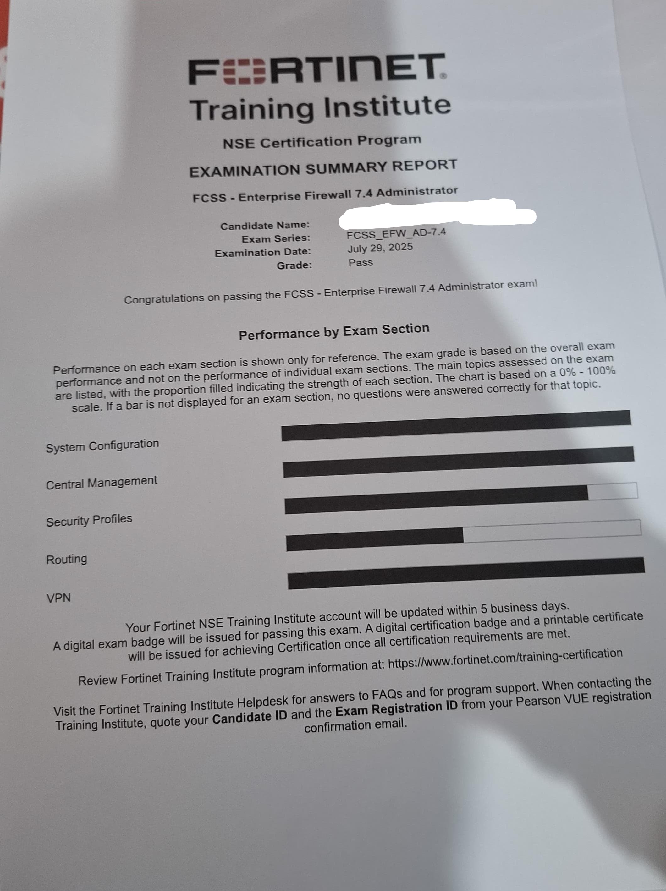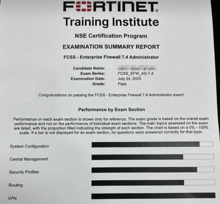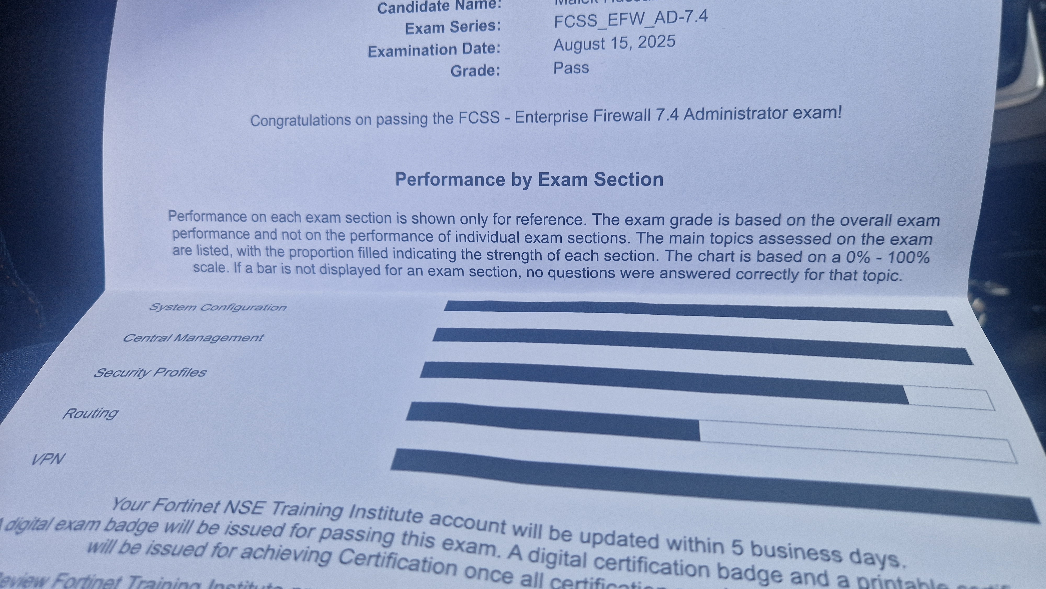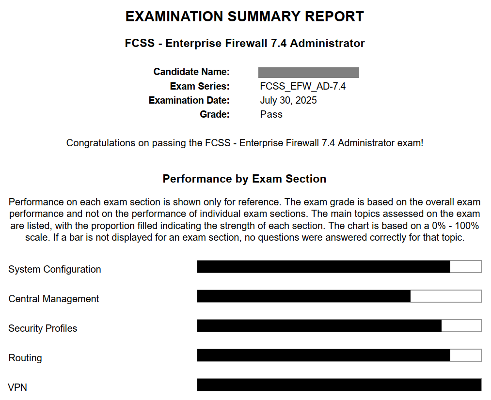 100% Score in the Real Enterprise Firewall 7.4 Exam (EFW_AD-7.4) at the Pearson VUE Testing Center
