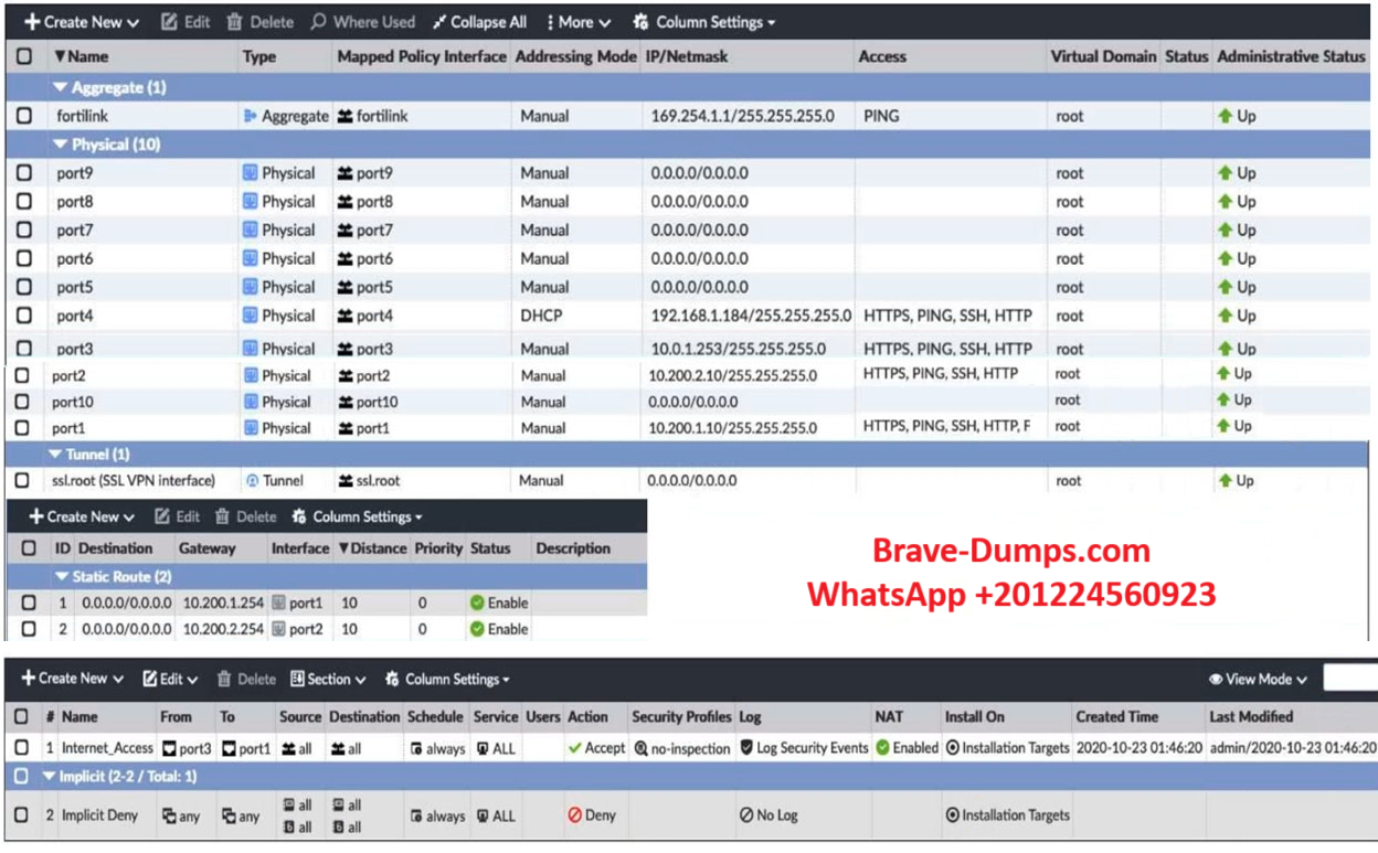 ExhibitA shows the system interface with the static routes and exhibit B shows the firewall policies on the managed FortiGate.