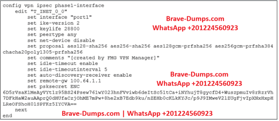 Refer to the exhibit, which shows the IPsec phase 1 configuration of a spoke.