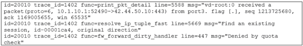 - D. The number of concurrent sessions for 10.1.10.1 exceeded the maximum number of concurrent sessions configured in the firewall policy, and the packet was dropped.