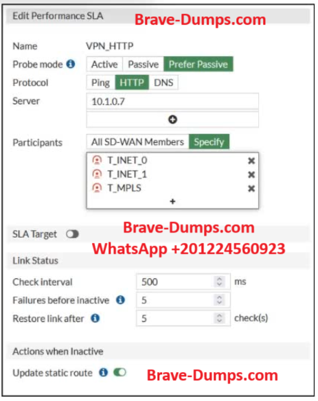 - A. After FortiGate switches to active mode, the SLA performance rule never fallsback to passive monitoring.