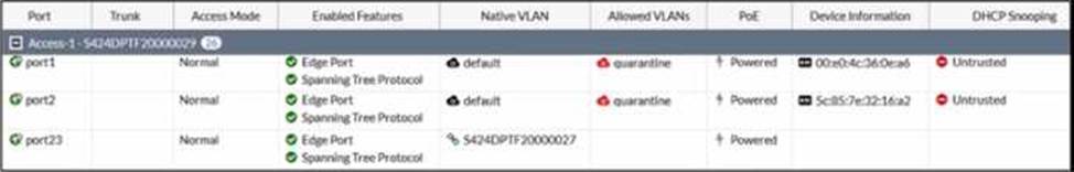 The exhibit shows the current status of the ports on the managed FortiSwitch, Access-1.
