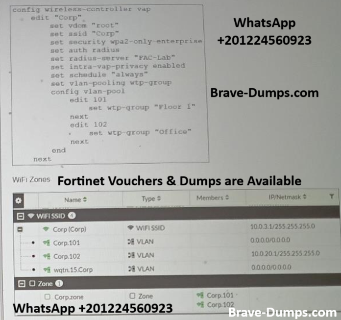An administrator has configured FortiGate with an SSID (Corp) with dynamic VLAN assignment, and also configured a RADIUS server to send IETF 64, IETF 65, and IETF 81 VSAs.