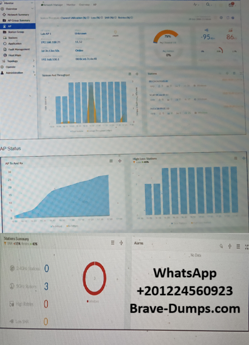 The exhibits show the status of an AP in a small office building. The building is located at the edge of a campus, and users are reporting issues with wireless network performance.