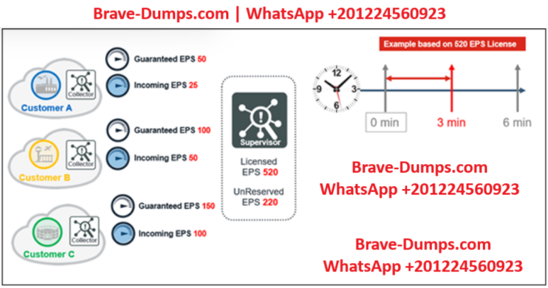Based on the information provided in the exhibit, calculate the unused events for the next three minutes for a 520 EPS license.