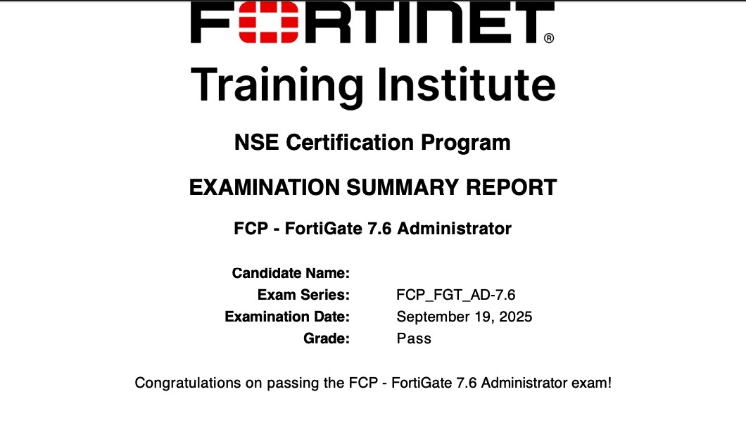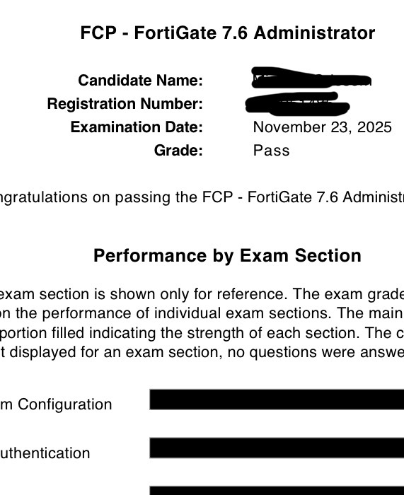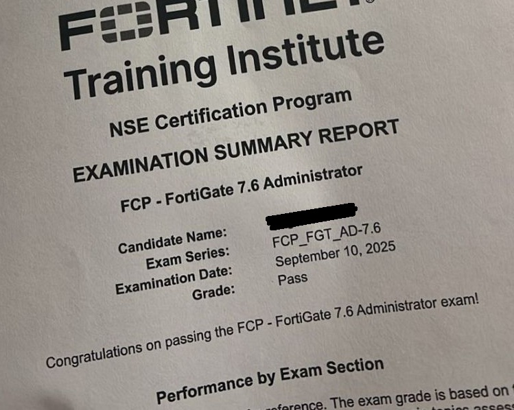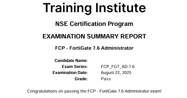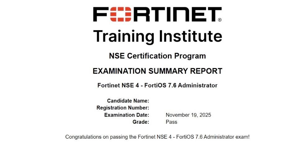 Passed NSE4 - FortiOS 7.6 Adminitrator Yesterday.