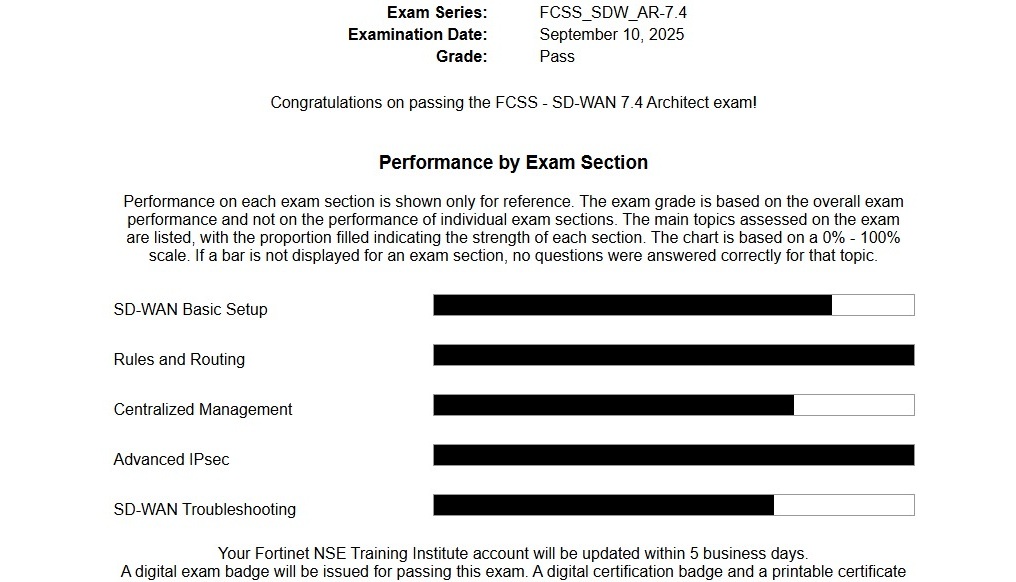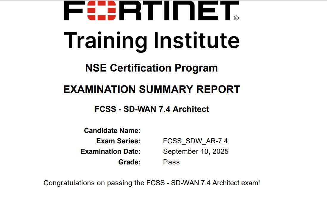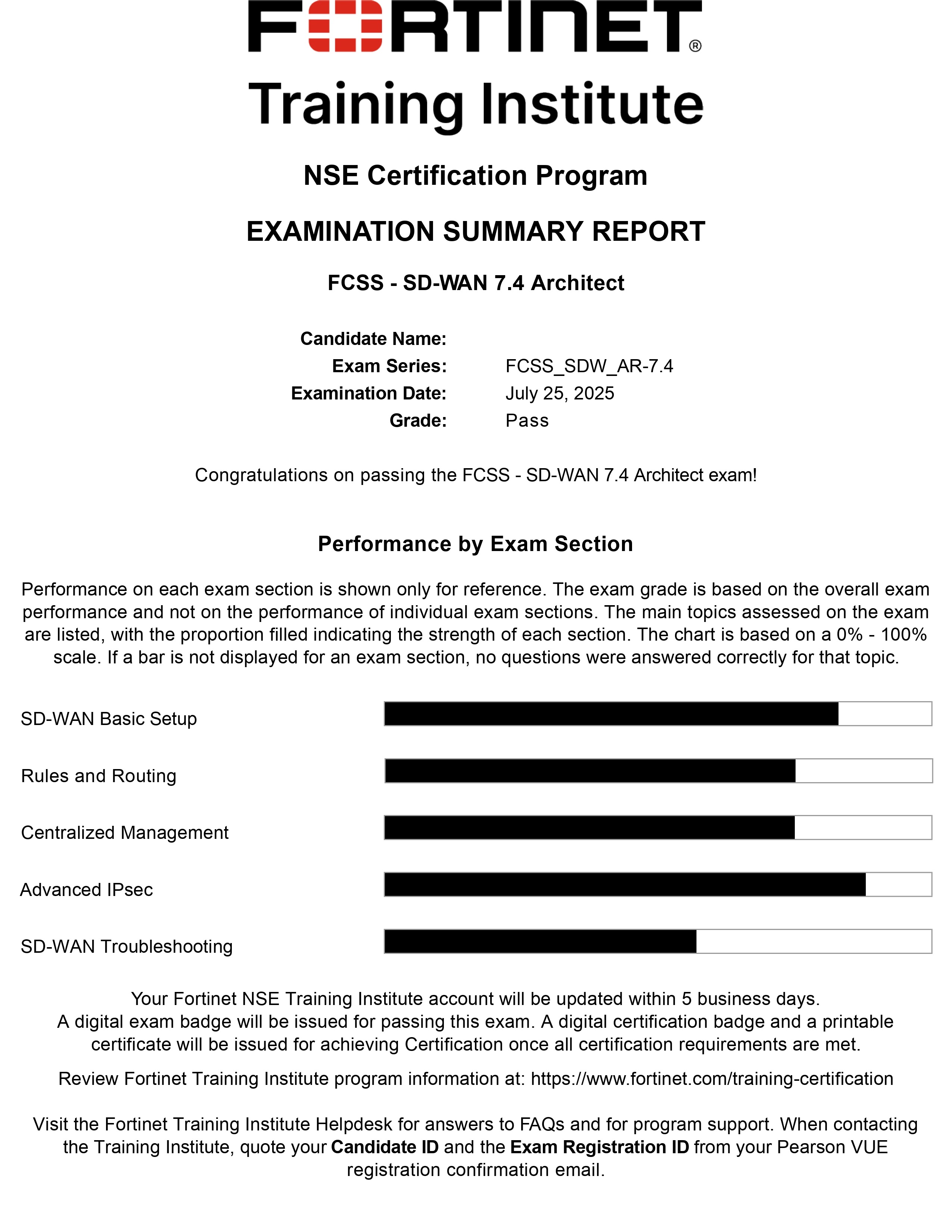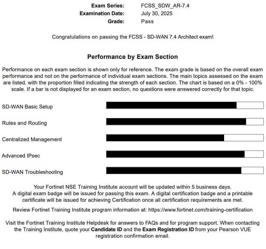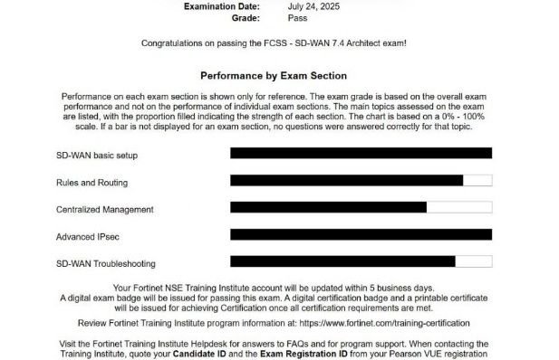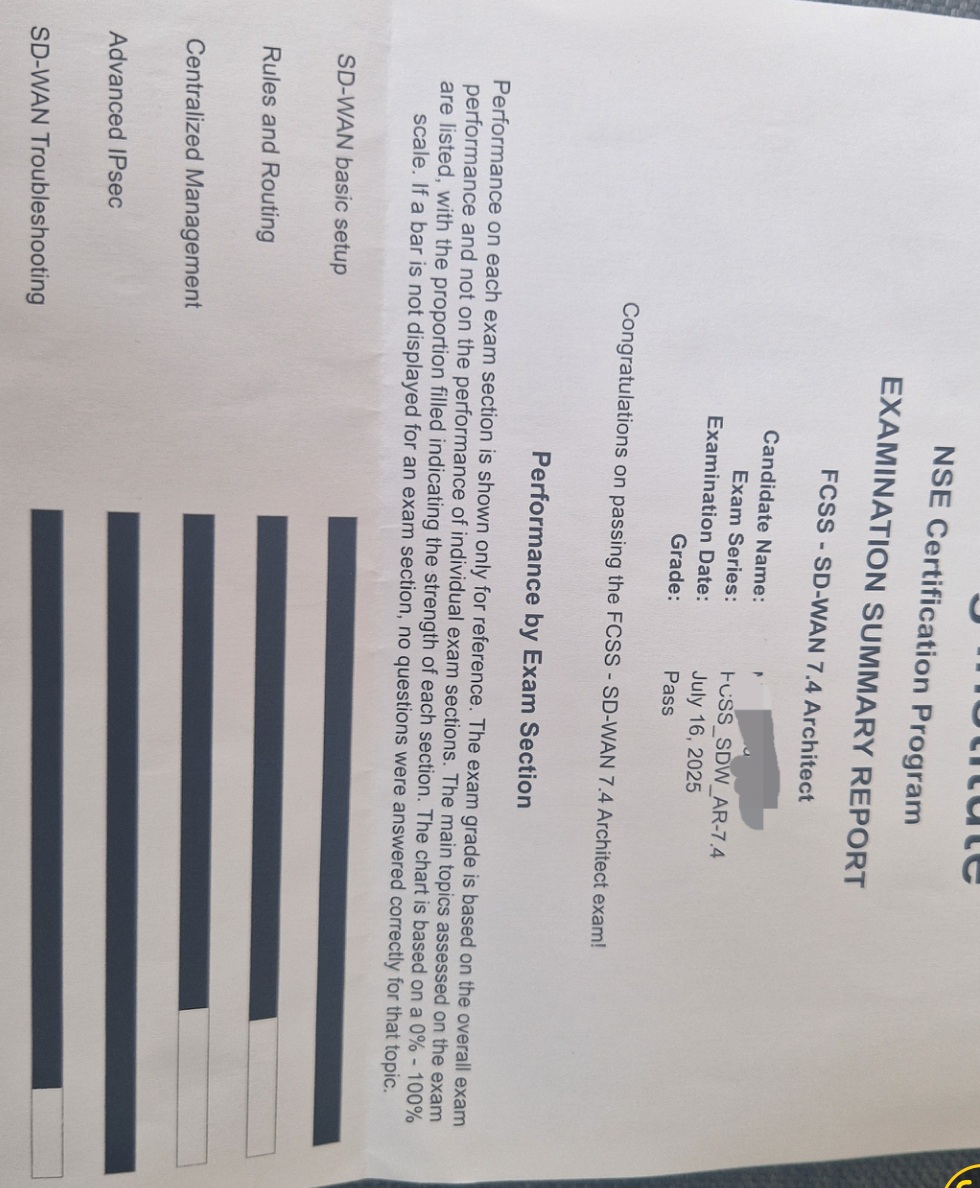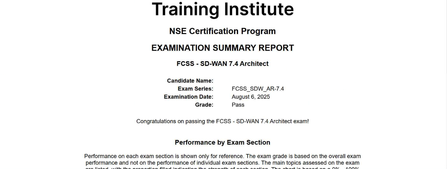 Hello, I passed FCSS - SD-WAN 7.4 Exam, Thank you for the support.