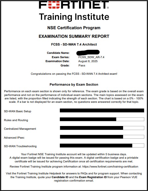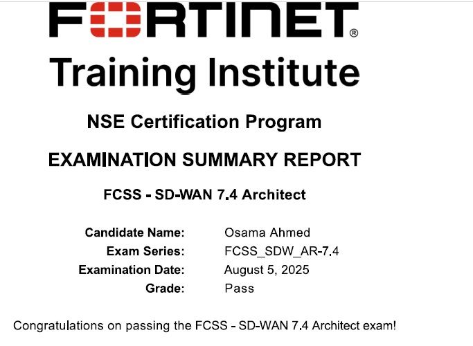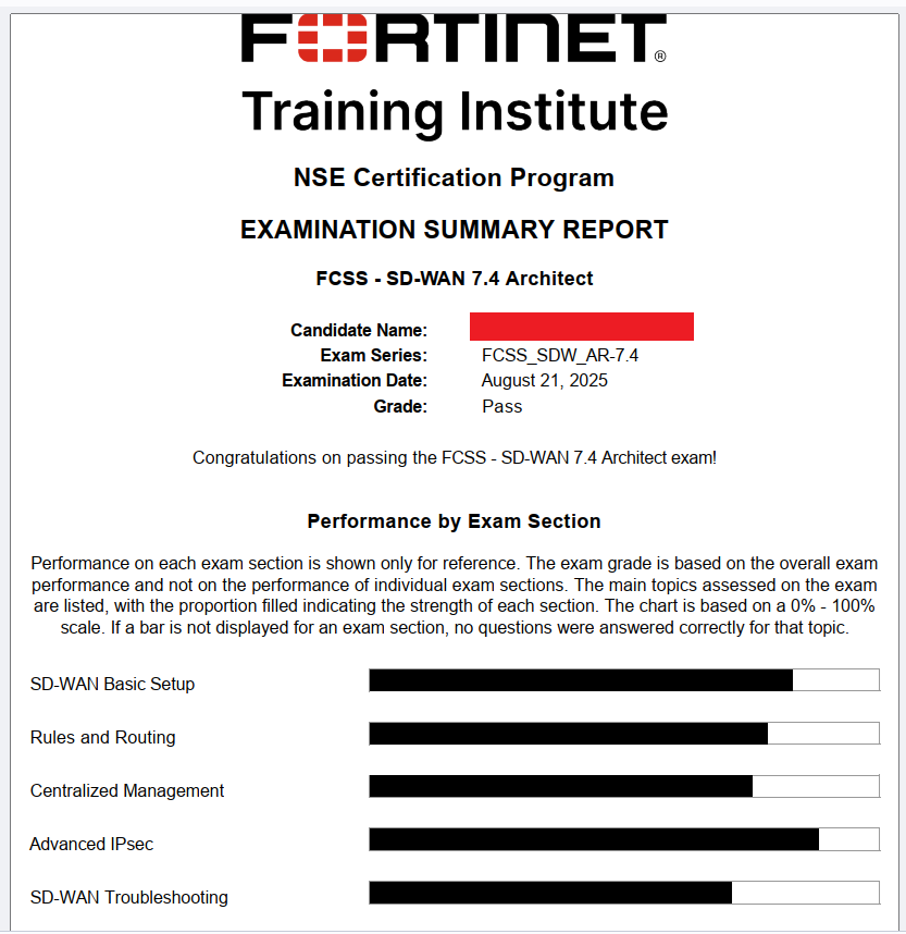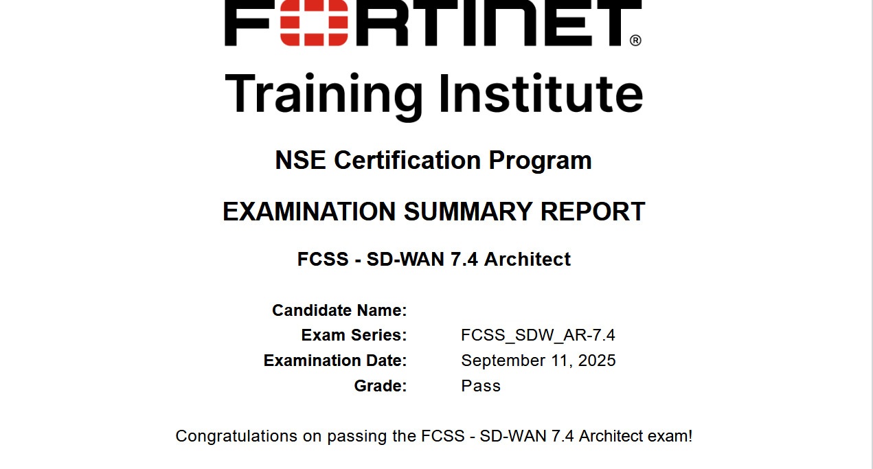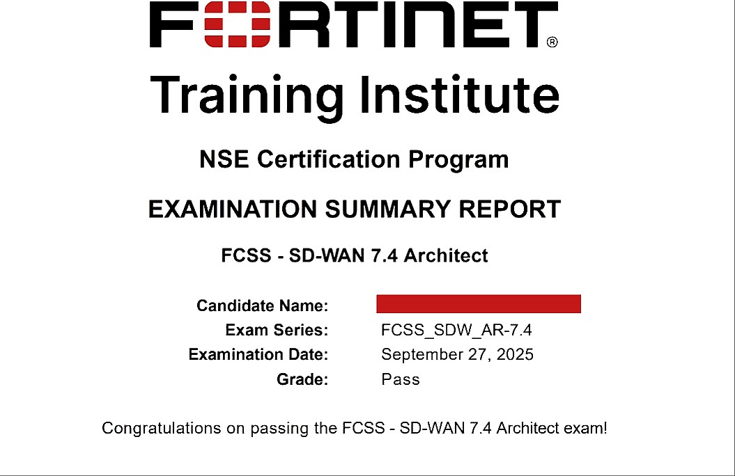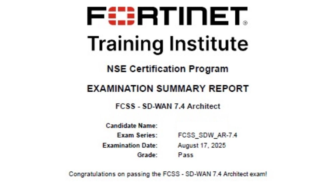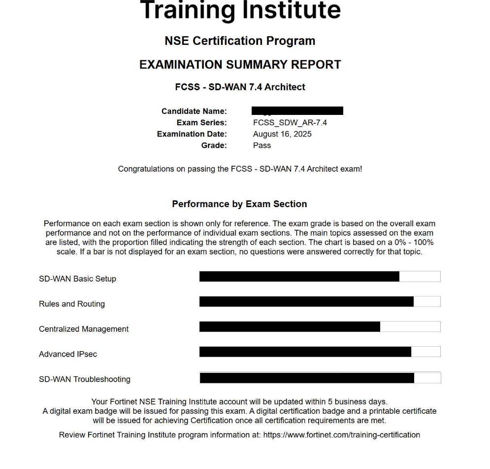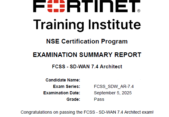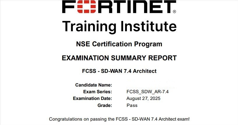 Hello, I passed FCSS - SD-WAN 7.4 Exam, Thank you for the support.