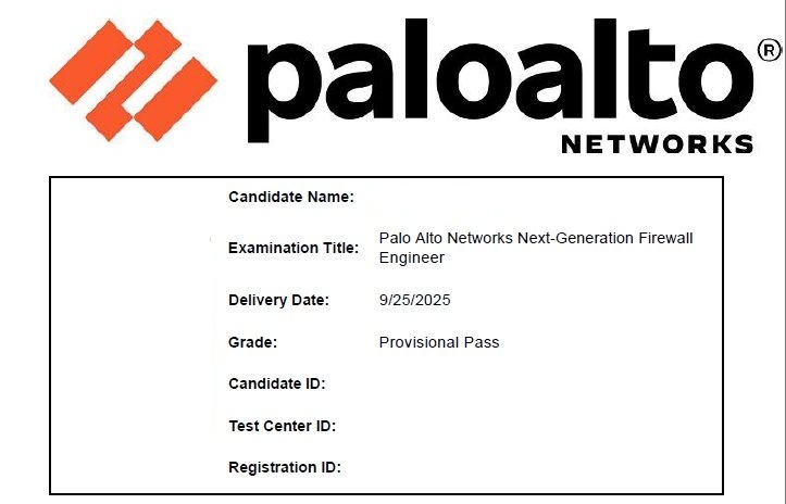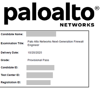 100% score in the Real Palo Alto Next-Generation Firewall (NGFW-Engineer Dump) at the Pearson VUE Testing Center