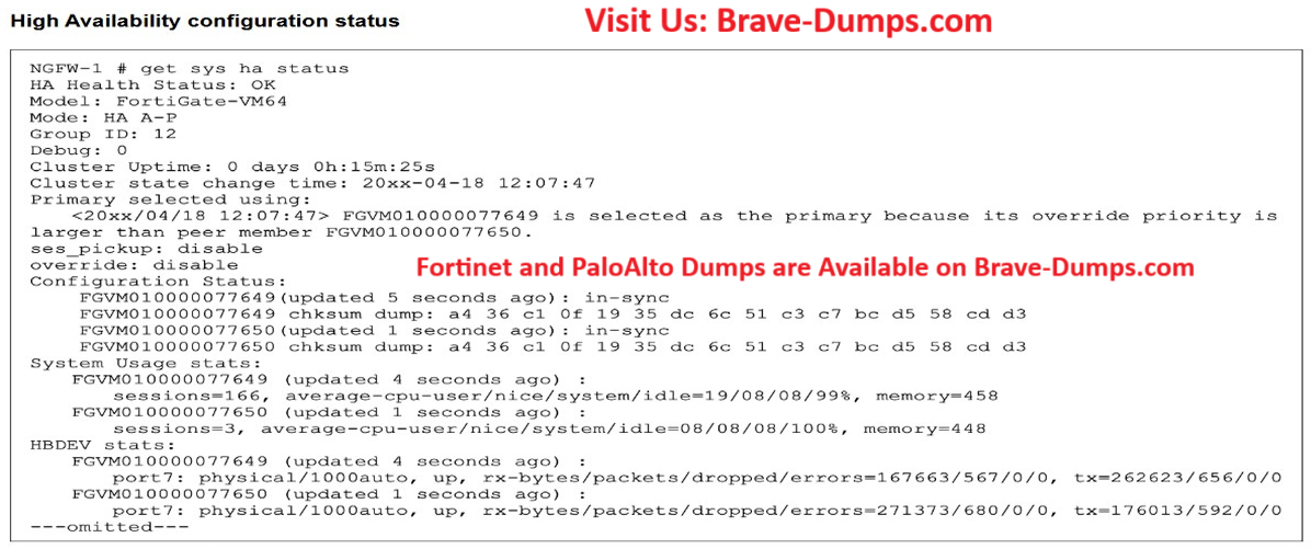 - A. If FGVM...649 is rebooted, FGVM...650 will become the primary FortiGate and retain that role, even after FGVM...649 rejoins the cluster.