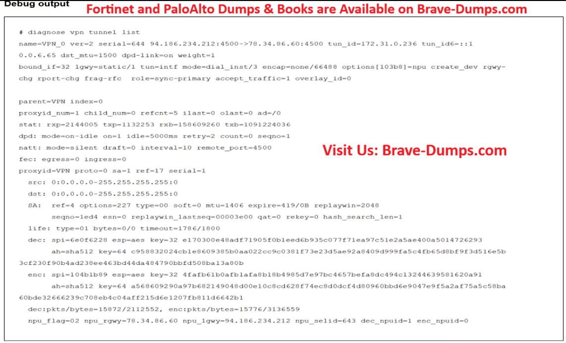 The output of the command diagnose vpn tunnel list is shown.