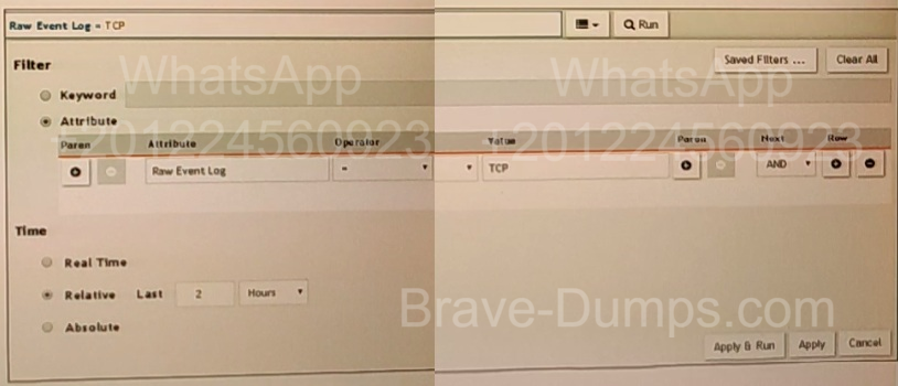 - D. In the Time section, the administrator selected the Relative Last option, and in the drop-down lists, selected 2 and Hours as the lime period The time period should be 24 hours.