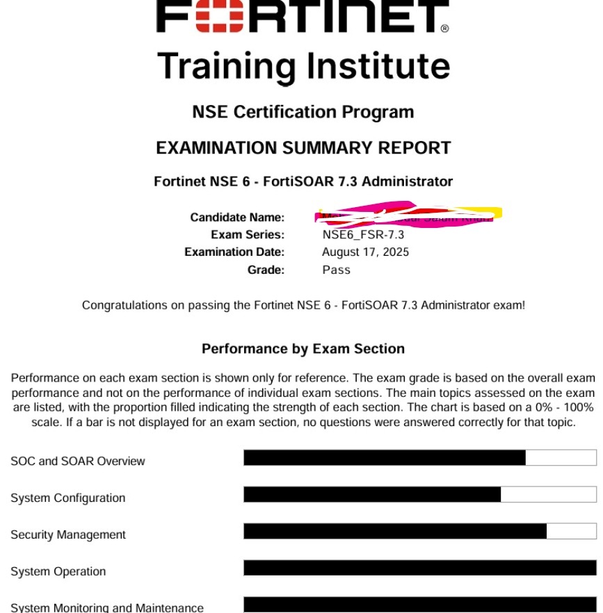 Passed Fortinet NSE 6 - FortiSOAR 7.3 yesterday thanks omar for usual support.