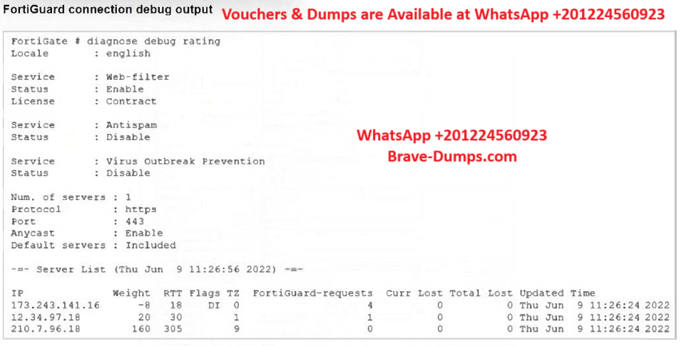 - D. FortiGate is using default FortiGuard communication settings.