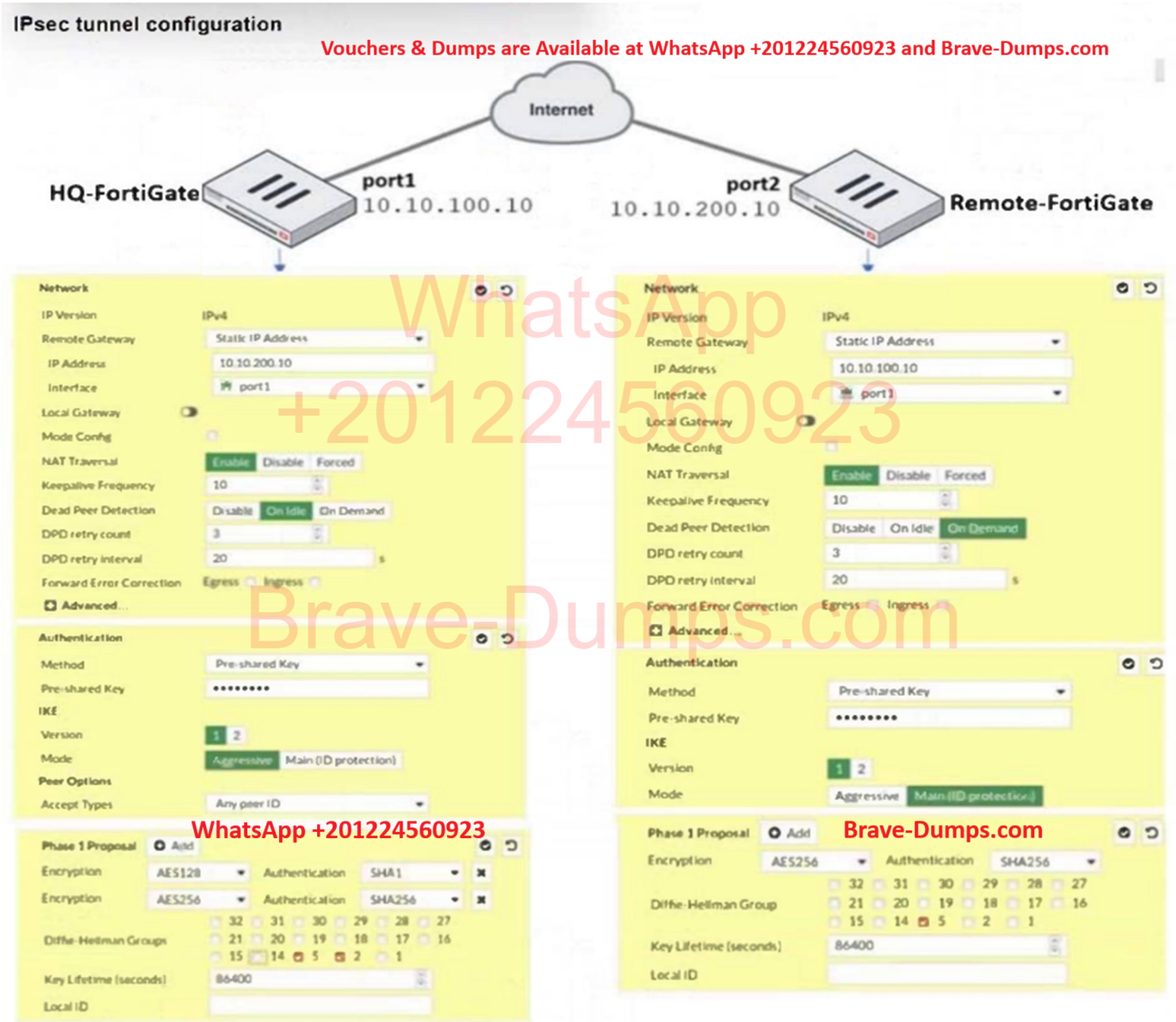 - D. On HQ-FortiGate, set IKE mode to Main (ID protection).