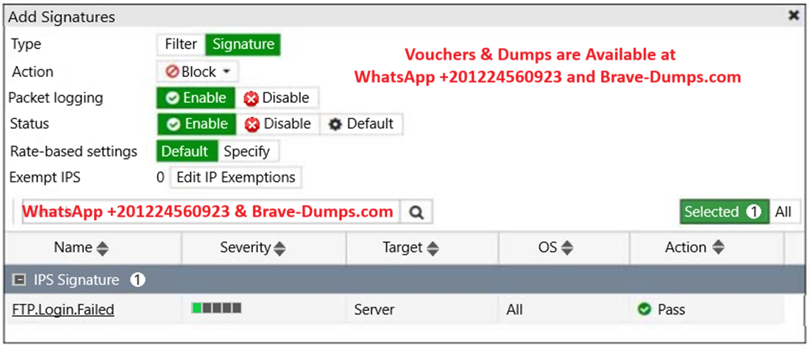 Review the intrusion prevention system (IPS) profile signature settings shown in the exhibit.