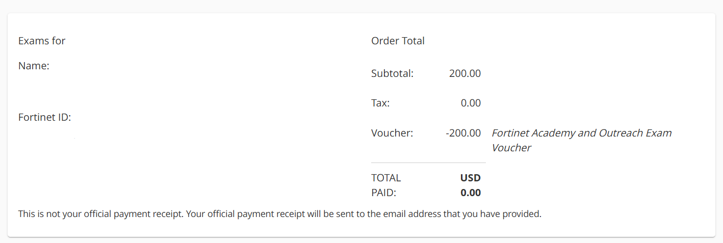 Fortinet voucher worked well, and exam booked successfully. Thanks!