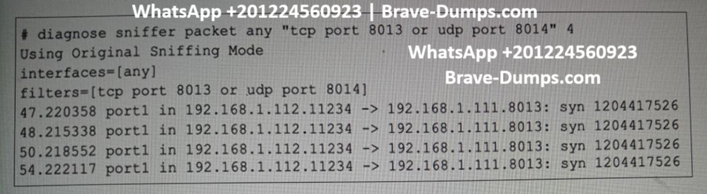 "TCP port 8013 is blocked. You can use the diagnose sniffer command to verify this."