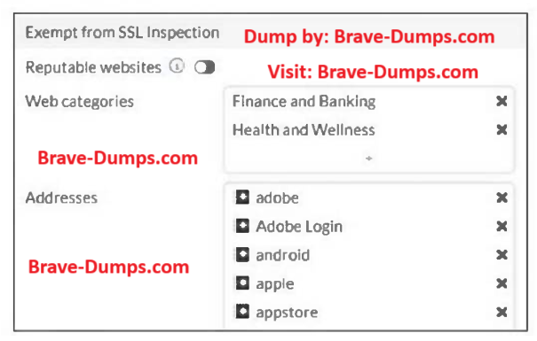 Why option B is incorrect, Reputable websites is disabled in the exhibit and it contains of allowlists to bypass SSL deep inspection, So it isn't the reason of exempt.