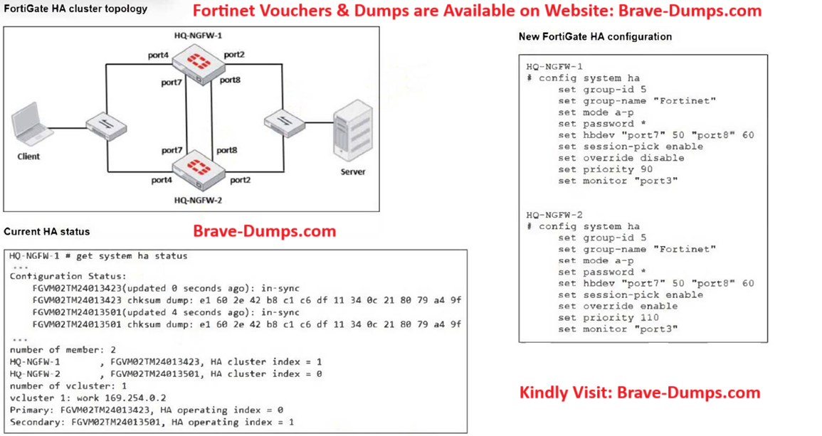 Refer to the exhibits. Based on the current HA status, an administrator updates the override and priority parameters on HQ-NGFW-1 and HQ-NGFW-2 as shown in the exhibit. What would be the expected outcome in the HA cluster? (Choose one answer)