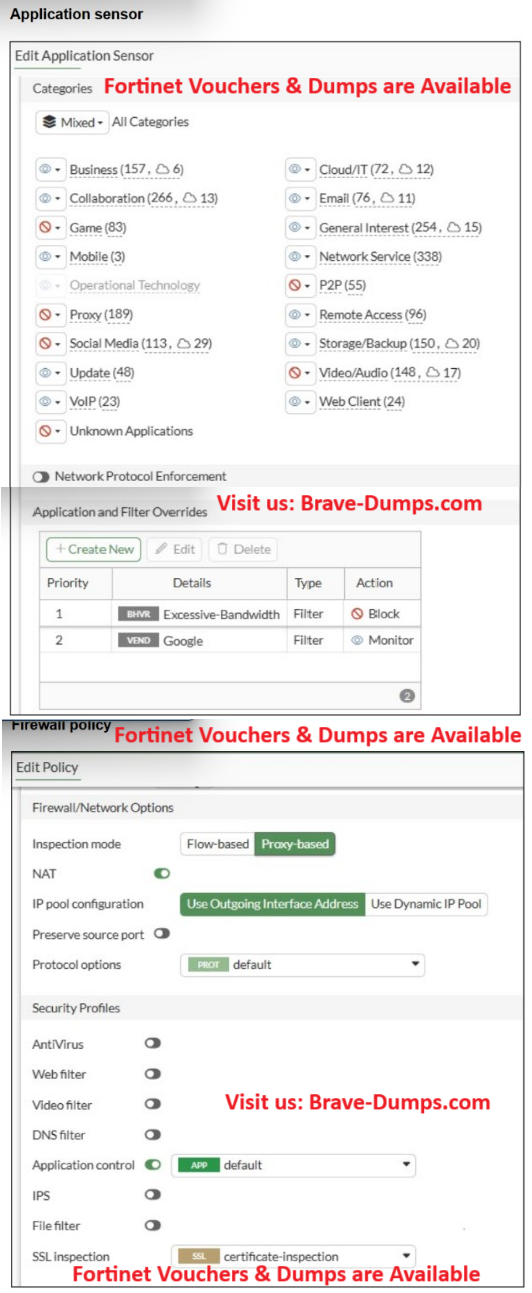 You have implemented the application sensor and the corresponding firewall policy as shown in the exhibits. You cannot access any of the Google applications, but you are able to access www.fortinet.com. Which two actions would you take to resolve the issue? (Choose two answers)