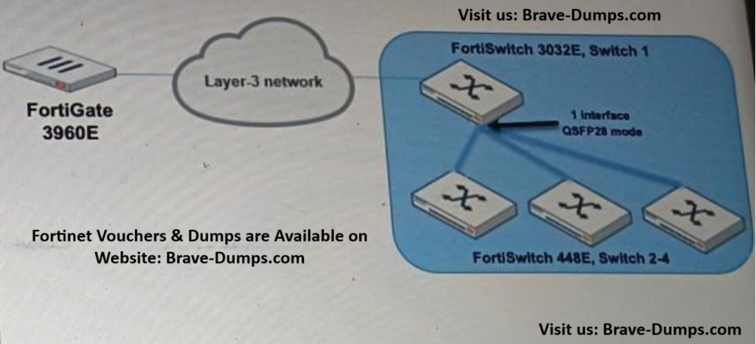 Refer to the exhibit. You are managing a FortiSwitch 3032E that is managed by FortiLink on a FortiGate 3960E. The 3032E is heavily utilized and there is only one port free. The requirement is to add an additional three FortiSwitch 448E devices with 10Gbps SFP+ connectivity directly to the 3032E. The plan is to use split port (phy-mode) with QSFP28 mode to connect the new 448E switches. In this scenario, which two statements about the switch deployment are correct? (Choose two answers)