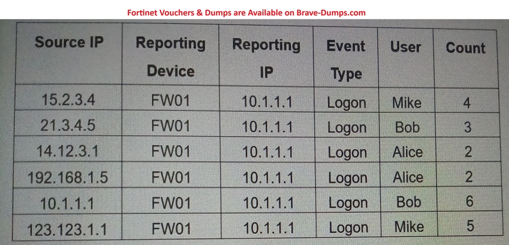 Refer to the exhibit. If you group the events by Reporting IP, Event Type, and User attributes, how many results will FortiSIEM display? (Choose one answer)